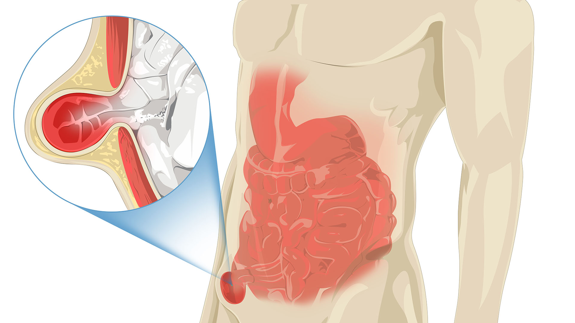 嵌頓を発症すると、腸管に血流障害が生じ、腸閉塞や最悪の場合は腸が腐ってしまう「壊死」が起こります。その結果、腹膜炎を引き起こし、緊急手術が必要になる場合があります。この嵌頓は、鼠径ヘルニアの初期段階でも発症する可能性があります。